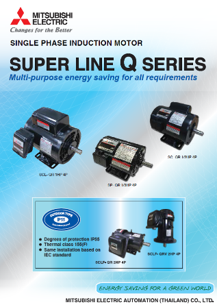 มอเตอร์ไฟฟ้า มิตซูบิชิ ชนิดแบบที่ใช้ไฟบ้าน 220V 1Phase มีด้วยกัน 8 รุ่น ให้เลือกใช้ คือรุ่น SP-QR , SC-QR , SCL-QR ( ตัวสีดำ ) ซึ่งมาแทนรุ่น SP-KR , SC-KR , SCL-KR ที่ยกเลิกการผลิตไปแล้ว โดยคุณสมบัติต่างๆของตัวมอเตอร์ยังคงเทียบเท่ากับรุ่นเดิมทุกประการและรุ่น SCF-QR , SCF-QRV , SCLF-QR , SCLF-QRV จะเป็นมอเตอร์ไฟฟ้า ไฟ 1เฟส ที่เป็นแบบ IP55 ซึ่งสามารถใช้ได้ทั้งภายในและภายนอกอาคาร