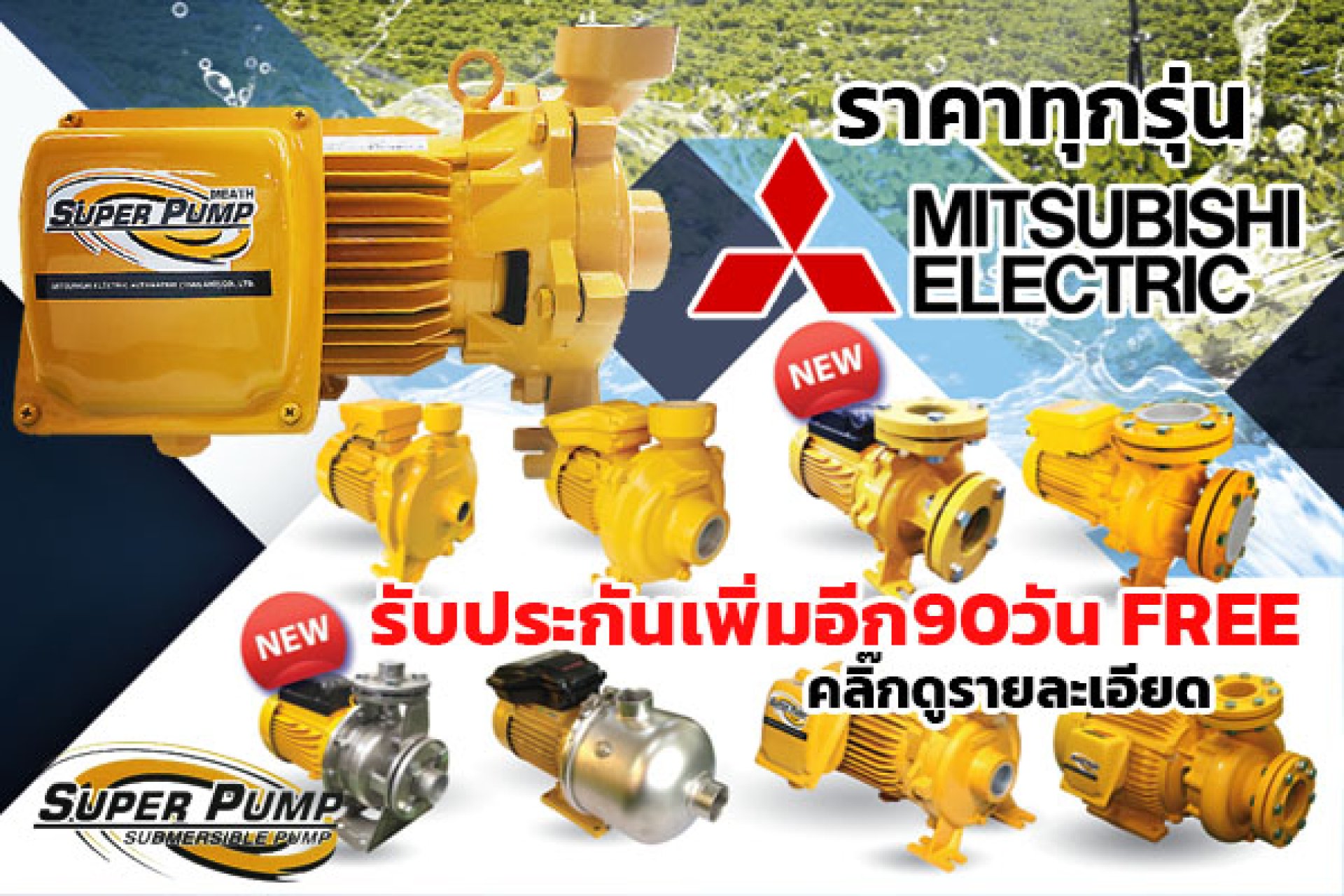 ปั๊มน้ำหอยโข่ง มิตซูบิชิ Mitsubishi รับประกันเพิ่มอีก 90วัน