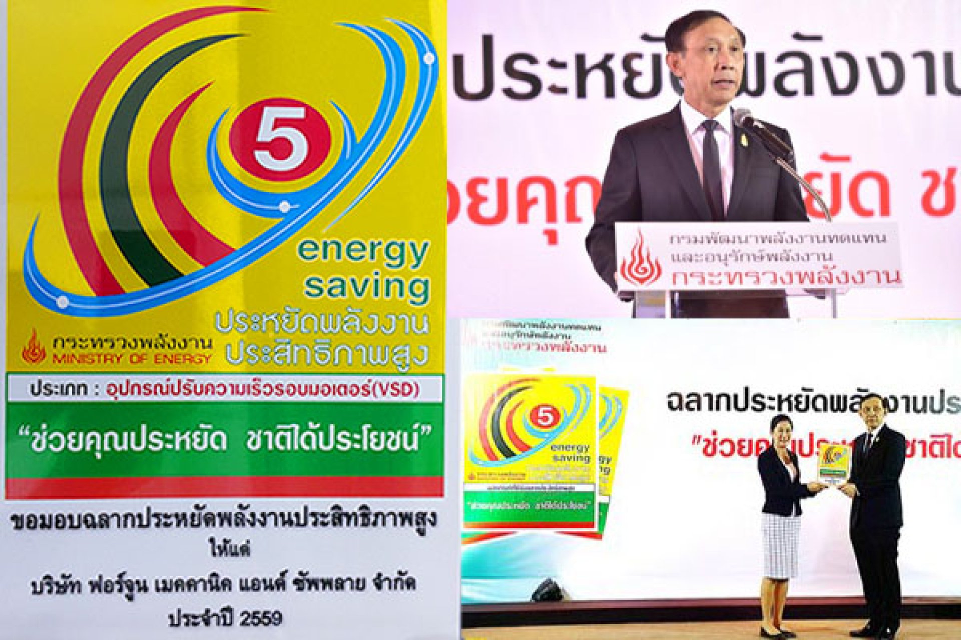 ฉลากประหยัดพลังงานประสิทธิภาพสูงในพิธี มอบฉลากประหยัดพลังงานประสิทธิภาพสูงจากกรมพัฒนาพลังงานทดแทนและอนุรักษ์พลังงาน โดยท่านประธานในพิธี พลเอกอนันตพร กาญจนรัตน์ รัฐมนตรีว่าการกระทรวงพลังงาน เป็นผู้มอบ โดยในปีนี้มีผู้ประกอบการได้รับฉลากฯ จากกรมพัฒนาพลังงานทดแทนและอนุรักษ์พลังงาน (พพ.) รวม 77 ราย จาก 11 ผลิตภัณฑ์ คาดช่วยชาติประหยัดพลังงาน 167.8ktoe หรือคิดเป็นเงินกว่า 5,100 ล้านบาท พลเอกอนันตพร กล่าวว่า "การที่ พพ.ได้ติดฉลากประหยัดพลังงานประสิทธิภาพสูง ในผลิตภัณท์ต่างๆนี้ นับว่าเป็นมาตรการที่จะเป็น ประโยชน์ต่อผู้บริโภค ในการเลือกซื้ออุปกรณ์ที่ประหยัดพลังงาน ซึ่งสามารถดูค่าตัวเลขได้ในฉลาก เพื่อพิจารณาเปรียบเที่ยบค่าประสิทธิภาพพลังงาน และเลือกใช้ผลิตภัณฑ์ได้อย่างถูกต้อง ทำให้ประชาชนมีความมั่นใจ ผู้ประกอบการก็ได้รับการยืนยันว่าอุปกรณ์ที่ผลิตมานี้ประหยัดพลังงานได้จริง" ณ โรงแรมมิราเคิล แกรนด์ คอนเวนชั่น เมื่อวันที่ 16 กุมภาพันธ์ 2560